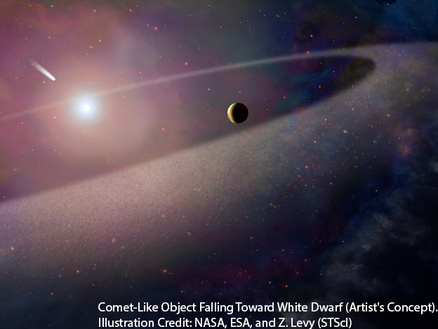The international team of astronomers observed the white dwarf WD 1425+540, which was discovered in 1974, 170 light-years from Earth in the constellation Boötes (the Herdsman). Using the Hubble Space Telescope and the W. M. Keck Observatory, they found evidence that an object similar to a comet was falling onto the star, getting tidally disrupted while doing so.