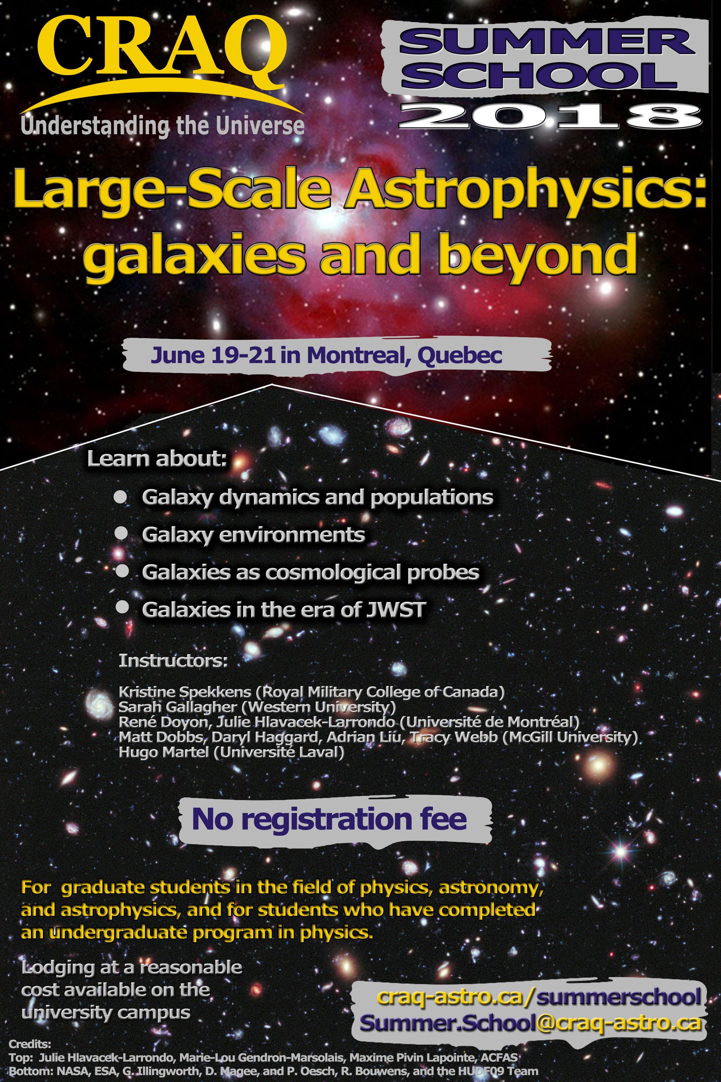 The CRAQ Summer School is principally aimed at graduate students in the fields of physics, astronomy, and astrophysics, although students who have completed an undergraduate program in physics will also be accepted.